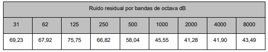 Ruido residual por bandas de octava dB.